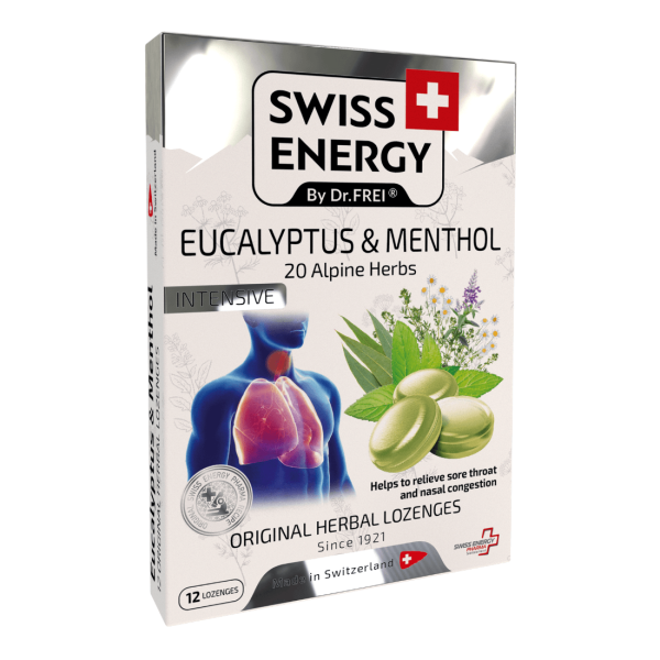 Choose '20 HERBS + EUCALYPTUS + MENTHOL' for a truly unique and effective phytotherapeutic experience. Feel more refreshed than a breath of Swiss mountain air with every lozenge you take.